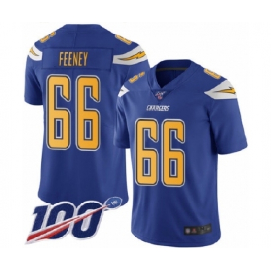 >Men's Los Angeles Chargers #66 Dan Feeney Limited Electric Blue Rush Vapor Untouchable 100th Season Football Jersey