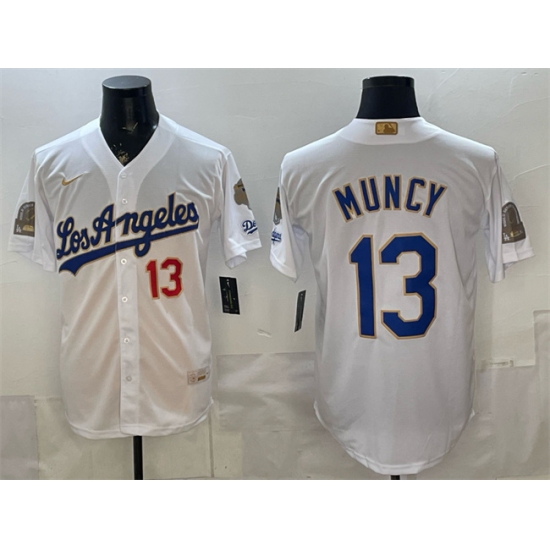 Men's Los Angeles Dodgers #13 Max Muncy White 2026 Gold Collection 9x & B2B Champs Stitched Baseball Jersey