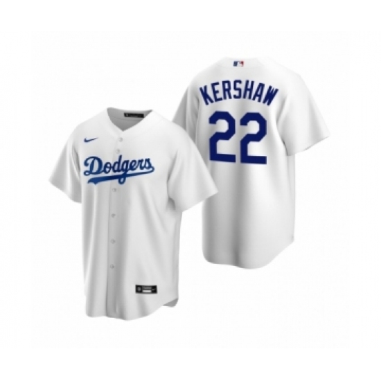 >Men's Los Angeles Dodgers #22 Clayton Kershaw Nike White Replica Home Jersey