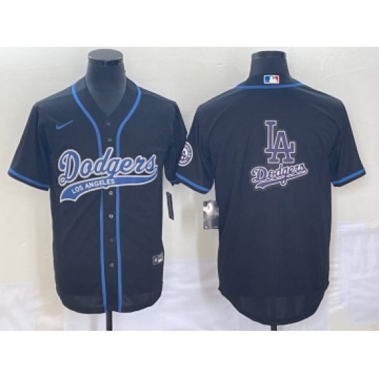 Men's Los Angeles Dodgers Black Team Big Logo Cool Base Stitched Baseball Jersey1