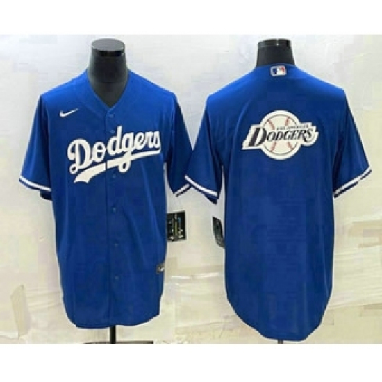 >Men's Los Angeles Dodgers Blue Team Big Logo Cool Base Stitched Baseball Jersey1
