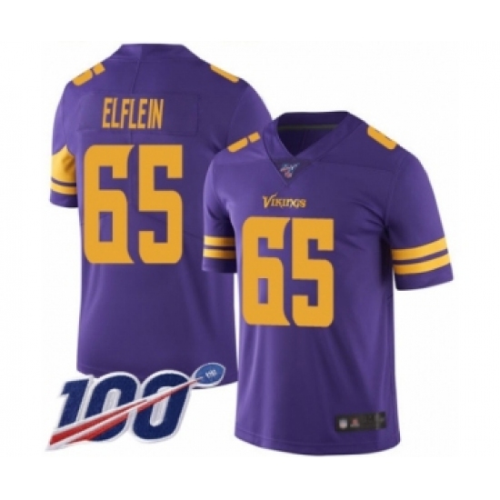 >Men's Minnesota Vikings #65 Pat Elflein Limited Purple Rush Vapor Untouchable 100th Season Football Jersey
