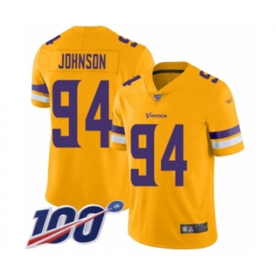 Men's Minnesota Vikings #94 Jaleel Johnson Limited Gold Inverted Legend 100th Season Football Jersey