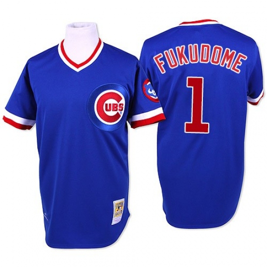 Home>MLB>Chicago Cubs>Kosuke Fukudome>Men's Mitchell and Ness Chicago Cubs #1 Kosuke Fukudome Authentic Blue Throwback MLB Jersey