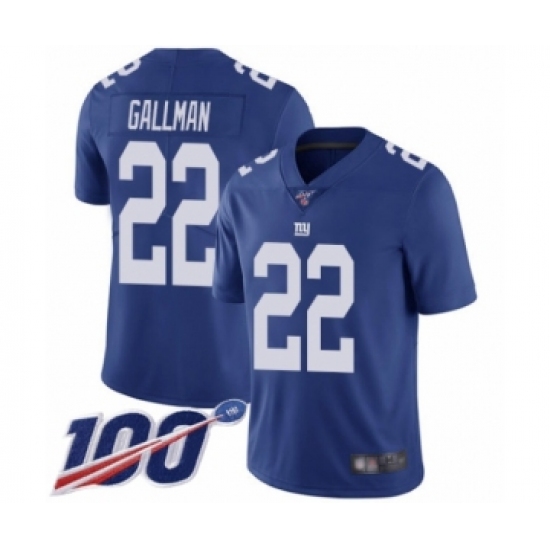 Men's New York Giants #22 Wayne Gallman Royal Blue Team Color Vapor Untouchable Limited Player 100th Season Football Jersey