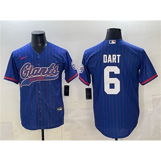 Men's New York Giants #6 Jaxson Dart Royal Pinstripe With Cool Base Stitched Baseball Jersey