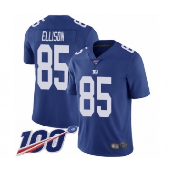 >Men's New York Giants #85 Rhett Ellison Royal Blue Team Color Vapor Untouchable Limited Player 100th Season Football Jersey