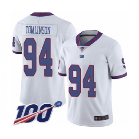>Men's New York Giants #94 Dalvin Tomlinson Limited White Rush Vapor Untouchable 100th Season Football Jersey