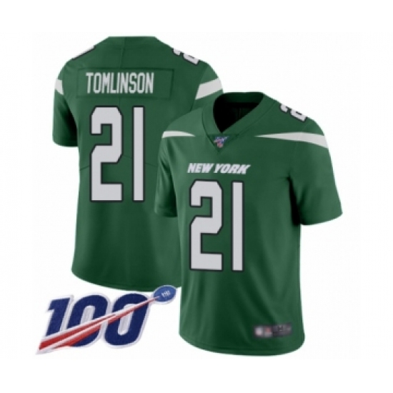 Men's New York Jets #21 LaDainian Tomlinson Green Team Color Vapor Untouchable Limited Player 100th Season Football Jersey