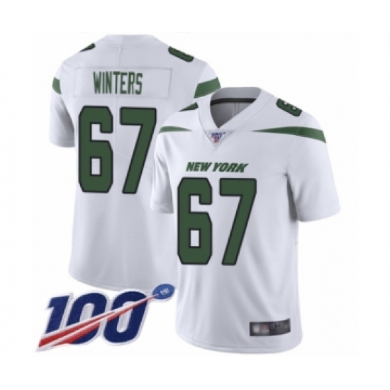 Men's New York Jets #67 Brian Winters White Vapor Untouchable Limited Player 100th Season Football Jersey