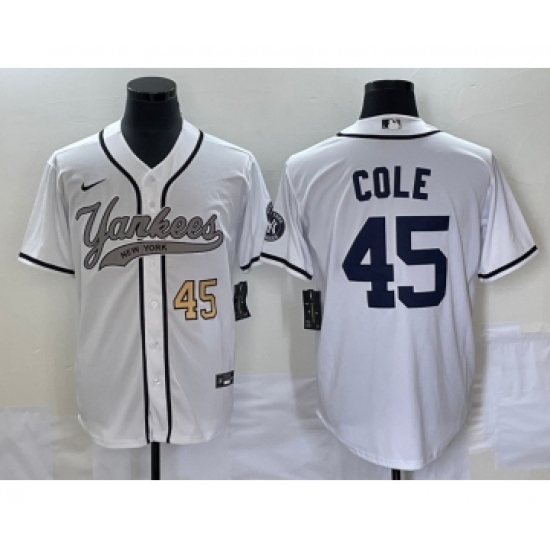 Men's New York Yankees #45 Gerrit Cole Number White Cool Base Stitched Baseball Jersey