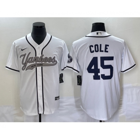 >Men's New York Yankees #45 Gerrit Cole White Cool Base Stitched Baseball Jersey