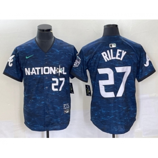 Men's Nike Atlanta Braves #27 Austin Riley Number Royal 2023 All Star Cool Base Stitched Baseball Jersey