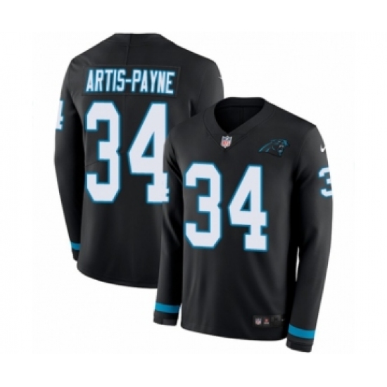 >Men's Nike Carolina Panthers #34 Cameron Artis-Payne Limited Black Therma Long Sleeve NFL Jersey