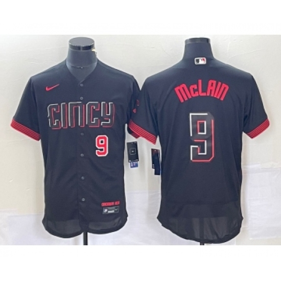 >Men's Nike Cincinnati Reds #9 Matt McLain Number Black 2023 City Connect Flex Base Stitched Jersey