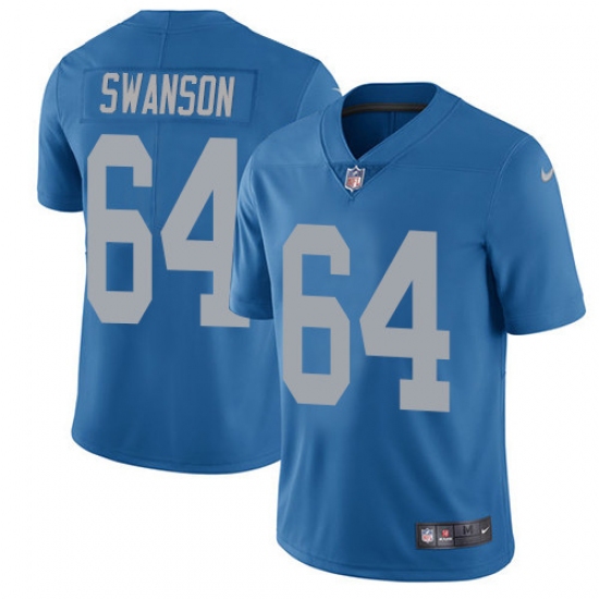 Men's Nike Detroit Lions #64 Travis Swanson Limited Blue Alternate Vapor Untouchable NFL Jersey