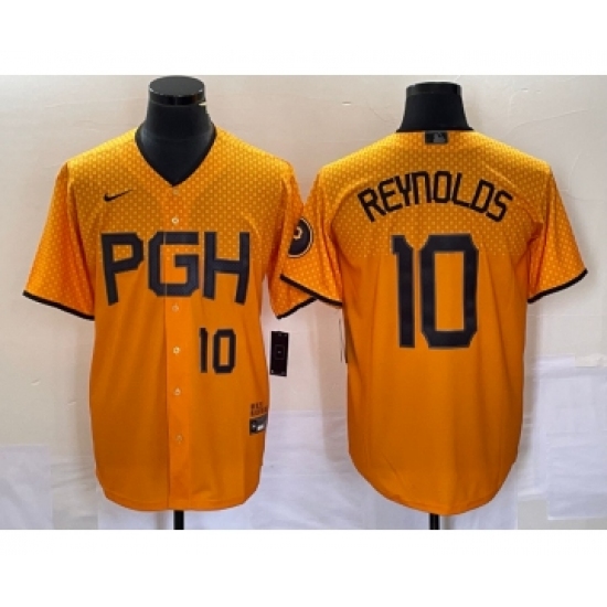 Men's Nike Pittsburgh Pirates #10 Bryan Reynolds Number Gold 2023 City Connect Stitched Jersey1