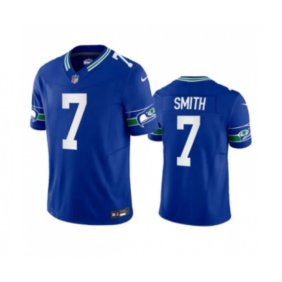 >Men's Nike Seattle Seahawks #7 Geno Smith Royal 2023 F.U.S.E. Vapor Limited Throwback Stitched Jersey