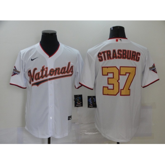 Men's Nike Washington Nationals #37 Stephen Strasburg White Gold Home Stitched Baseball Jersey