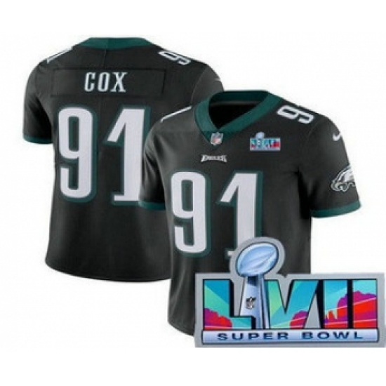>Men's Philadelphia Eagles #91 Fletcher Cox Limited Black Super Bowl LVII Vapor Jersey