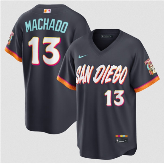 Men's San Diego Padres #13 Manny Machado Black Number 2022 City Connect Cool Base Stitched Jersey