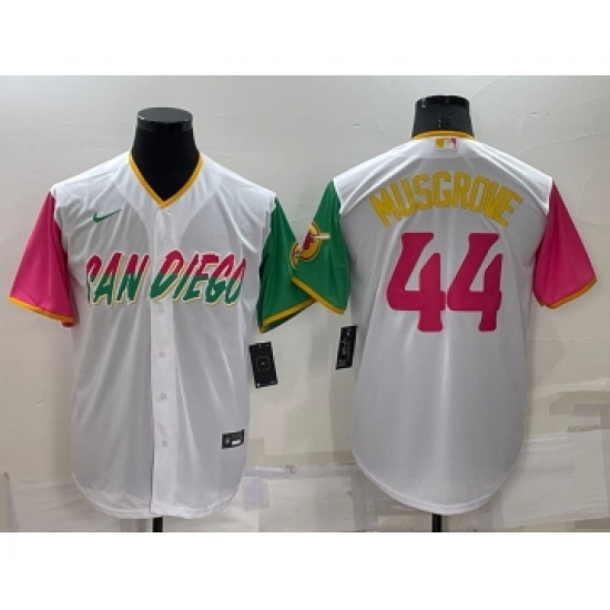 >Men's San Diego Padres #44 Joe Musgrove White 2022 City Connect Cool Base Stitched Jersey