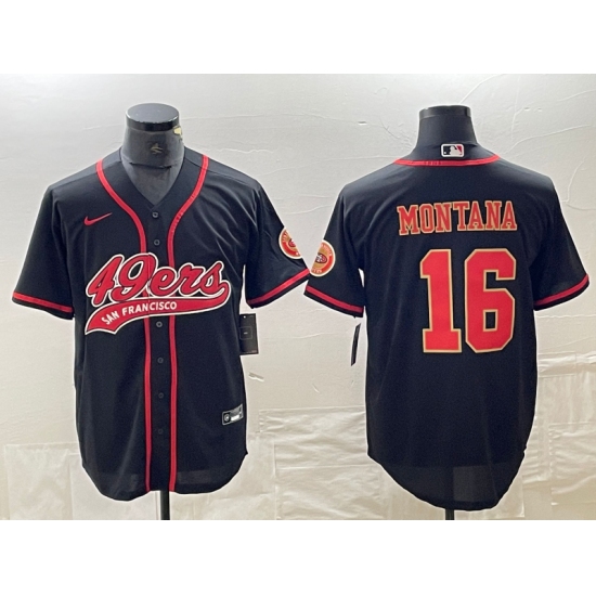 Men's San Francisco 49ers #16 Joe Montana Black With Patch Cool Base Stitched Baseball Jersey