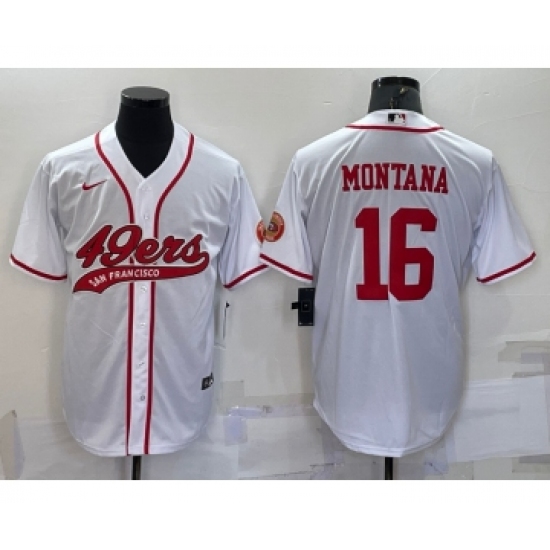 Men's San Francisco 49ers #16 Joe Montana White With Patch Cool Base Stitched Baseball Jersey