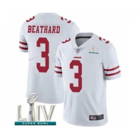 >Men's San Francisco 49ers #3 C. J. Beathard White Vapor Untouchable Limited Player Super Bowl LIV Bound Football Jersey