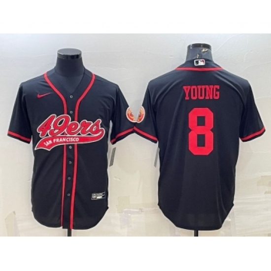 Men's San Francisco 49ers #8 Steve Young Black With Patch Cool Base Stitched Baseball Jersey