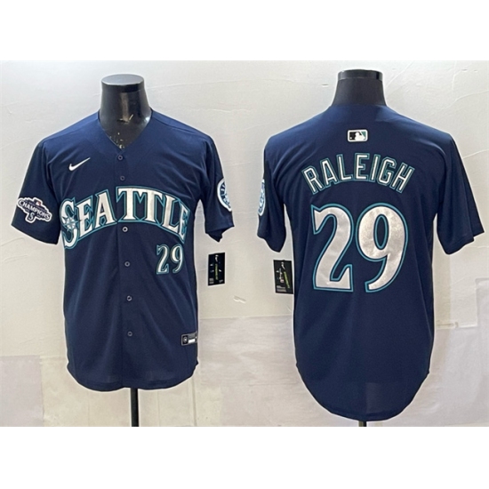 >Men's Seattle Mariners #29 Cal Raleigh Navy With 2025 AL West Division Champions Limited Stitched jersey