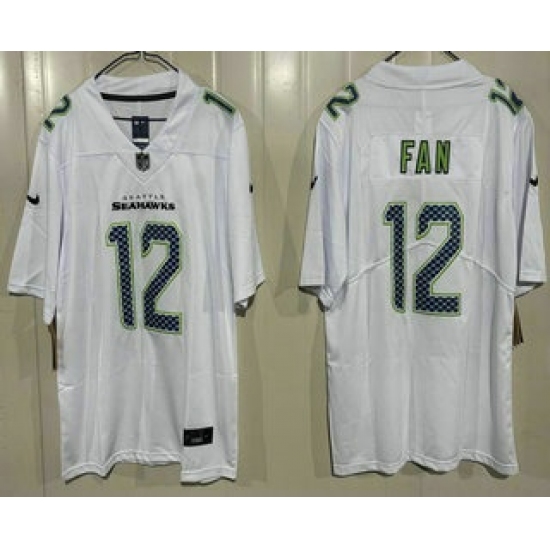 >Men's Seattle Seahawks #12 Fan Limited White Fashion Vapor Jersey