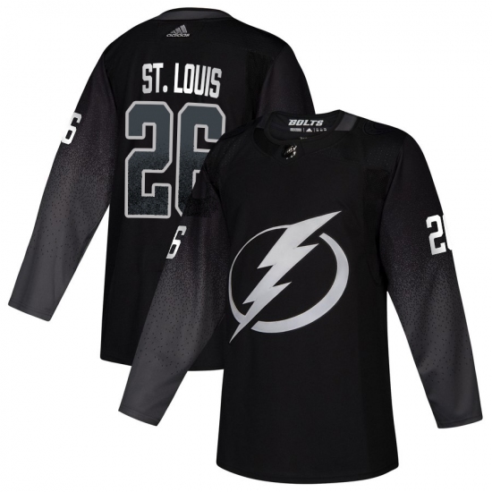 Men's Adidas Tampa Bay Lightning #26 Martin St. Louis Authentic Black 1917-2017 100th Anniversary NHL Jersey