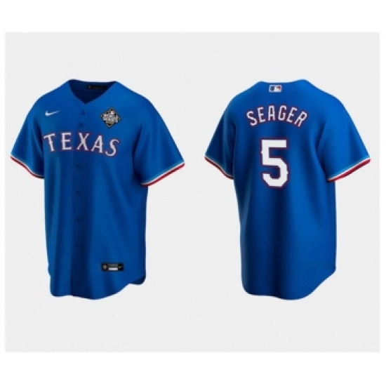 Men's Texas Rangers #5 Corey Seager Royal 2023 World Series Stitched Baseball Jersey