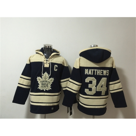 >Men's Toronto Maple Leafs #34 Auston Matthews Black All Stitched Sweatshirt Hoodie
