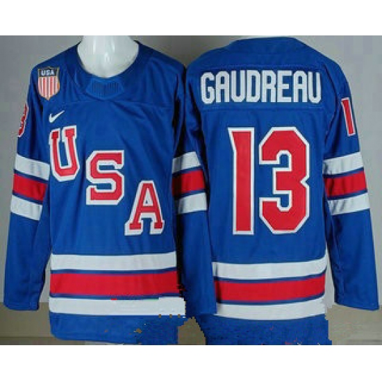 >Men's USA #13 Johnny Gudreau Blue 2026 olympics authentic jersey