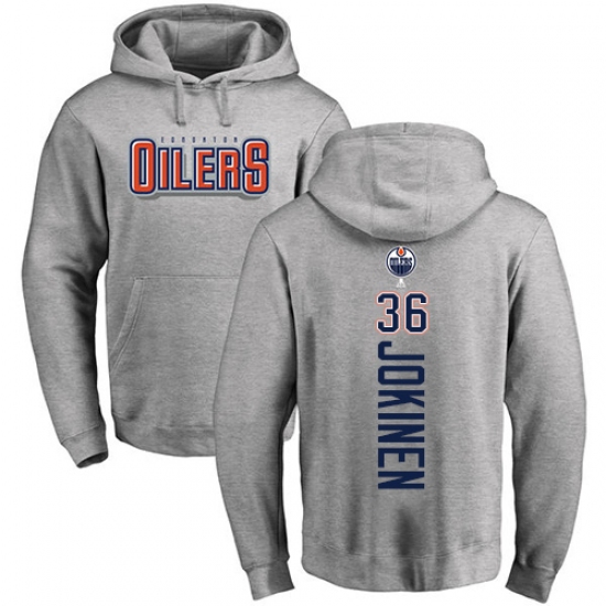 NHL Adidas Edmonton Oilers #36 Jussi Jokinen Ash Backer Pullover Hoodie