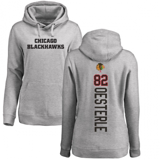 Home>NHL>Chicago Blackhawks>Jordan Oesterle>NHL Women's Adidas Chicago Blackhawks #82 Jordan Oesterle Ash Backer Pullover Hoodie