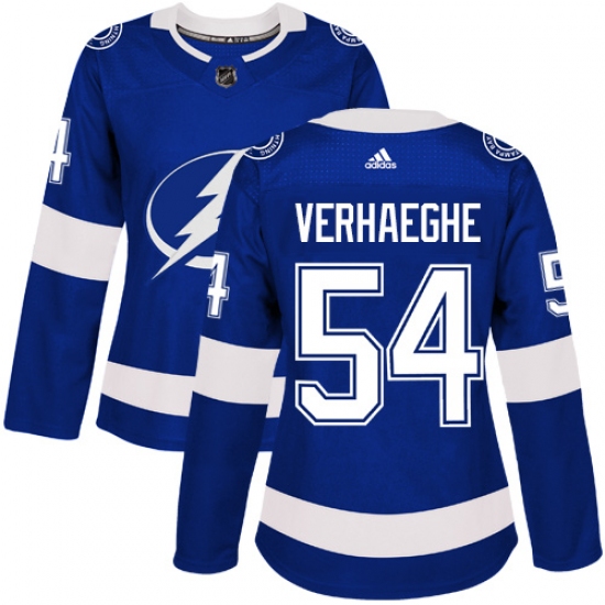 Home>NHL>Tampa Bay Lightning>Carter Verhaeghe>Women's Adidas Tampa Bay Lightning #54 Carter Verhaeghe Authentic Royal Blue Home NHL Jersey