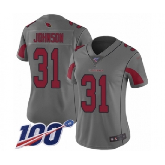 >Women's Arizona Cardinals #31 David Johnson Limited Silver Inverted Legend 100th Season Football Jersey