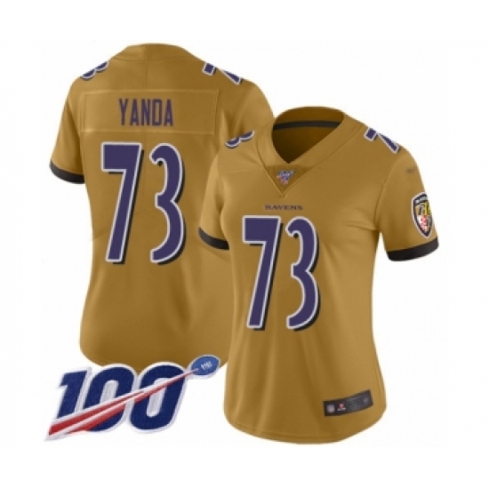 Women's Baltimore Ravens #73 Marshal Yanda Limited Gold Inverted Legend 100th Season Football Jersey