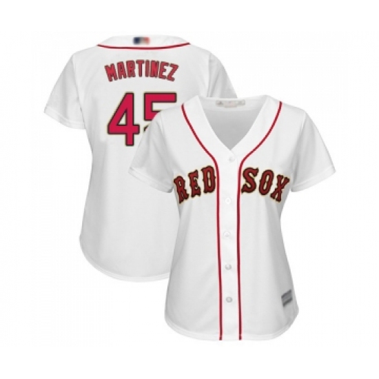Women's Boston Red Sox #45 Pedro Martinez Authentic White 2019 Gold Program Cool Base Baseball Jersey