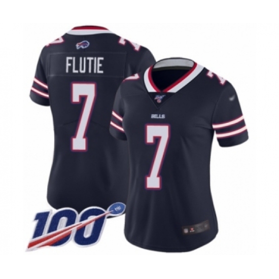 >Women's Buffalo Bills #7 Doug Flutie Limited Navy Blue Inverted Legend 100th Season Football Jersey