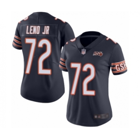 >Women's Chicago Bears #72 Charles Leno Navy Blue Team Color 100th Season Limited Football Jersey