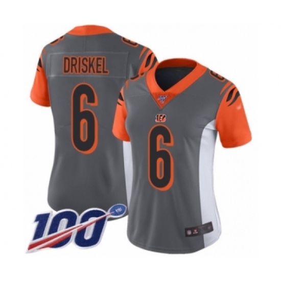 Women's Cincinnati Bengals #6 Jeff Driskel Limited Silver Inverted Legend 100th Season Football Jersey