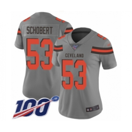 >Women's Cleveland Browns #53 Joe Schobert Limited Gray Inverted Legend 100th Season Football Jersey