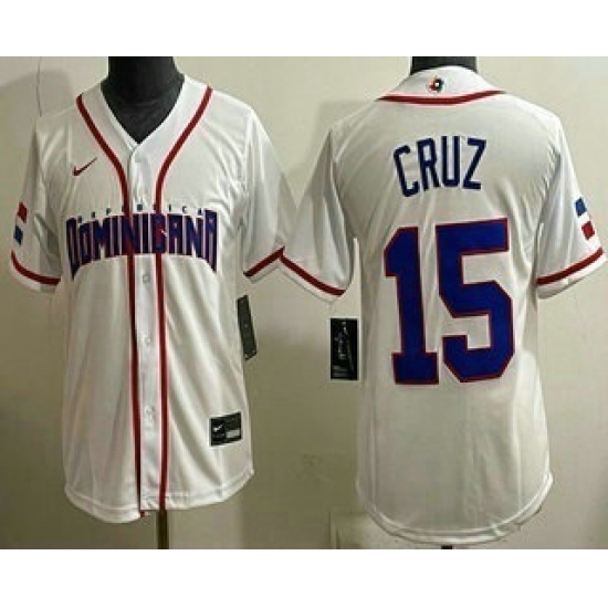 >Women's Dominican #15 Oneil Cruz White 2026 World Baseball Classic Cool Base Jersey