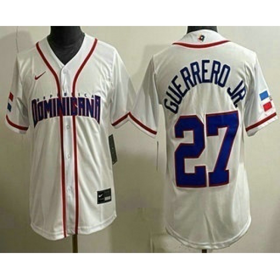 Men's Dominican Republic Baseball #27 Vladimir Guerrero Jr. White 2026 World Baseball Classic Home Stadium Stitched Jersey