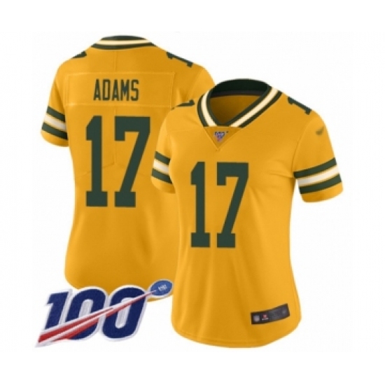 >Women's Green Bay Packers #17 Davante Adams Limited Gold Inverted Legend 100th Season Football Jersey