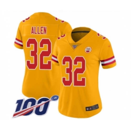 Women's Kansas City Chiefs #32 Marcus Allen Limited Gold Inverted Legend 100th Season Football Jersey